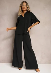 Czarny Komplet Koszula z Ozdobnymi Rękawami i Szerokie Spodnie Rivasene