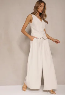Jasnobeżowy Komplet Garniturowy Kamizelka i Szerokie Spodnie Ravitrae