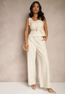 Jasnobeżowy Komplet Garniturowy z Wiskozą Szerokie Spodnie i Kamizelka Helivia