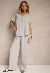 Jasnoszary Komplet Bluzka i Luźne Spodnie z Wiskozą i Kieszonkami Efraria
