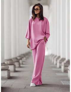 Stylowy komplet dresowy z tencelu MEGARA - pudrowy róż Postaw na komfort w luksusowym wydaniu z kompletem dresowym MEGARA z tencelu . Wykonany z miękkiego, oddychającego tencelu, komplet nie tylko otula ciało przyjemnością, ale też świetnie się układa i wygląda stylowo. Oversize’owa bluzka o luźnym kroju i szerokie spodnie z kieszeniami, na elastycznej gumce w pasie, tworzą duet idealny na co dzień. To dres, który pokochasz za wygodę i elegancję . Noś go z białymi sneakersami i dużymi okularami na miejski spacer, z klapkami i shopperką na zakupy.