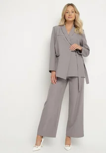 Szary Garnitur Szerokie Spodnie i Asymetryczna Marynarka Pumeira