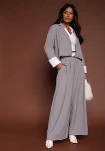 Szary Garniturowy Komplet Marynarka i Spodnie z Kontrastującymi Zdobieniami Davirielle