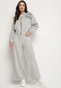 Szary Komplet Dresowy z Wiskozą Spodnie o Szerokim Kroju i Bluza z Broszką Redaella