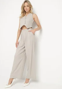 Szary Komplet Garniturowy z Bawełną i Wiskozą Spodnie i Kamizelka Polvivi