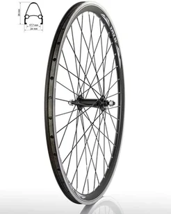 Koło przód 26" obręcz stożkowa czarna, piasta aluminiowa czarna na nakrętki, szprychy czarne