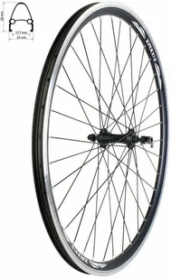 Koło przód 27,5" obręcz stożkowa czarna, piasta czarna QR, łożyska maszynowe, szprychy czarne