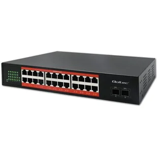 Switch QOLTEC 52365 Gigabit Ethernet z funkcją PoE to solidny, niezarządzalny przełącznik sieciowy zaprojektowany do sieci LAN, monitoringu IP i instalacji Wi-Fi. Urządzenie oferuje 24 porty RJ45 10/100/1000 Mb/s z obsługą PoE, dzięki czemu zasili kamery, punkty dostępowe i inne urządzenia bez konieczności stosowania osobnych zasilaczy. Dodatkowo posiada 2 porty SFP 1 Gb/s do uplinku światłowodowego lub łączenia z innymi przełącznikami. Switch pracuje w standardzie Gigabit, ma wysoką przepustowość oraz kompaktową obudowę, co czyni go idealnym wyborem do małych i średnich instalacji sieciowych, gdzie potrzebne jest jednoczesne zasilanie PoE i szybka transmisja danych.