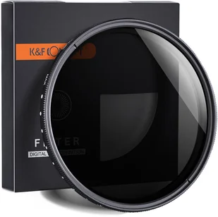 Podstawowy filtr szary regulowany marki K&F Concept, redukuje ilość światła w zakresie ND2-ND400 czyli około od 1 do 9 przysłon. Wykonany jest z wysokiej jakości szkła optycznego. Posiada solidną i cienką aluminiową ramkę - brak luzów, winietowania oraz chroni przed zakleszczaniem się filtra.
