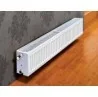 Stalowe grzejniki Purmo Ventil Compact o wys. 200 mm podłączane są z dołu lub po demontażu wkładki zaworu - z boku. Wyróżniają się idealnie gładkim wykończeniem płyty czołowej. Dzięki temu pozwalają na uzyskanie nie tylko efektywnej, ale także estetycznej instalacji grzewczej. Dzięki oszczędnej stylistyce i szerokiej palecie dostępnych kolorów te naścienne lub stojące grzejniki są niezwykle uniwersalne pasują zarówno do wnętrz nowoczesnych, jak i klasycznych. Dwa króćce przyłączeniowe umieszczone od dołu pozwalają na dyskretne ukrycie podłączenia do instalacji.