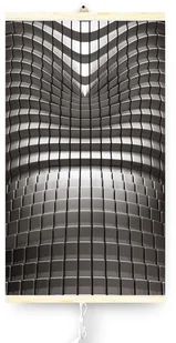 Główna część grzejnika wykonana jest z odpornej na zaginanie i łamanie polimerowej folii grzewczej, na którą nakładana jest grafika ze wzorem. Całość spięta jest drewnianymi listwami.
