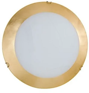 Wyposażona w złotą krawędź - lampa sufitowa Moon Geometryczne kształty i minimalistyczne wzornictwo charakteryzują lampę sufitową Moon, która dzięki połączeniu kolorów złota i matowej bieli tworzy przytulną i ciepłą atmosferę. Okrągły szklany klosz delikatnie odfiltrowuje światło zastosowanych źródeł światła i nie oślepia. Klosz jest otoczony ręcznie malowaną, złotą obwódką, która tworzy blask w połączeniu z dekorem. Lampa sufitowa Moon może być stosowana jako źródło światła w salonach, sypialniach i korytarzach.
