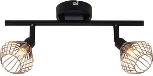 Dekoracyjna lampa sufitowa Dama wyróżnia się interesującym, atrakcyjnym wyglądem - czarna rama kontrastuje tu z klatkowymi kloszami w kolorze miedzi, co pozwala uzyskać ciekawy efekt świetlny i nastrojową atmosferę. W oprawki można wstawić rozmaite źródła światła z trzonkami GU9, o mocy do 33 W. Jeśli będą one ściemnialne, lampę da się ściemniać przez przyłącze instalacji domowej.