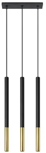 stal malowana proszkowo Kolor: czarny, złoty Źródło światła: G9 , 3 x 12W, 50Hz, 220V, IP20 Wymiary: 30 x 8 x 100 cm (możliwość regulacji) Wymiary klosza: 2,5 cm x 50 cm Żarówki w komplecie: