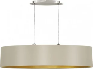 Lampa wisząca Eglo Maserlo 2x60W E27 cappucino/złoty 31618 - Seria lamp Eglo Maserlo to kolekcja lamp abażurowych wykonanych z wysokiej jakości materiałów dających przepiękny efekt wizualny. Dzięki temu, że każda z lamp posiada połyskujący wewnątrz abażur w kolorze złota i srebra, światło padające z żarówki dodatkowo odbija się od ścian bocznych abażura co dodatkowo wpływa na elegancję każdej z opraw. Seria Eglo Maserlo jest bardzo bogata ponieważ zawiera lampy wiszące okrągłe i podłużne w dwóch rozmiarach, plafon, kinkiet, lampę podłogową orz lampkę stołową. Każda z opraw oświetleniowych występuje w kolorystyce: czarny - złoty, cappuccino - złoty, taupe - złoty oraz szary - srebrny.