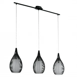 Lampa wisząca zwis Eglo Razoni 3x60W E27 czarna 94389 - Nowoczesne lampy druciane producenta Eglo to nie tylko precyzyjne wykonanie ale także estetyczny wygląd. Dodatkowym atutem lampy jest wewnętrzny klosz z satynowanego szkła opleciony drucianym abażurem. Zaletą lamp drucianych jest to, że samoistnie tworzą część wystroju pomieszczenia przez swoje oryginalne formy jednocześnie dając dużo światła w pomieszczeniu. Dodatkową dekoracją metalowych elementów jest zastosowanie dekoracyjnych żarówek najlepiej w stylu vintage. Lampy druciane coraz częściej wieszane są w kuchni, pokojach dziennych czy młodzieżowych.