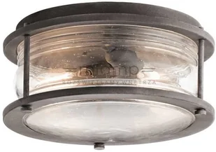 KICHLER Mocna zewnętrzna lampa sufitowa Ashland Bay, aluminiowy / szary / cynkowy, szkło, vintage