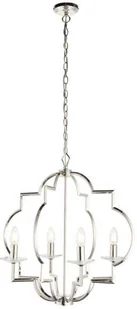 Producent: Endon Wymiary: wysokość 63-120cm, średnica 58cm Materiał wykonania: stal, kryształ Kolor wykończenia: polerowany nikiel Rodzaj źródła światła: 4xE14 Max. moc: 40W Napięcie: