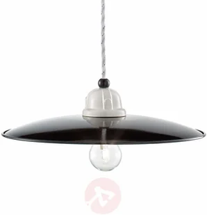Minimalistyczna lampa wisząca retro C1612 w kolorach czarnym i białym Lampa wisząca C1612 z błyszczącymi czarno-białymi powierzchniami ceramicznymi nadaje współczesny wygląd tej lampie, przywołując jednocześnie styl z przeszłości. Design lampy jest zatem idealny zarówno do wnętrz w stylu retro, jak i do pomieszczeń nowoczesnych. Szczególny efekt daje fakt, że światło emitowane jest z wnętrza czarnego klosza, wykonanego z ceramiki. Ta lampa wisząca C1612 jest wytwarzana ręcznie we Włoszech zgodnie z tradycyjnymi metodami produkcji, które były przekazywane z pokolenia na pokolenie właśnie we Włoszech. Charakterystyczne dla tej oprawy są wyraźne kształty, błyszczące kolory i tylko drobne detale, takie jak śruby nośne przy rozecie sufitowej.