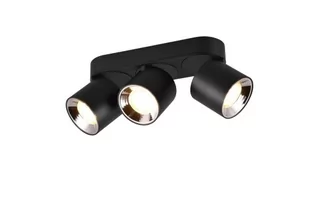 Lampa sufitowa spot 3 punktowa z możliwością regulacji położenia źródła światła. Elementy metalowe wykończone w kolorze czarnym matowym.