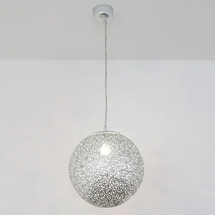 Ekstrawagancko wykonana lampa wisząca Utopistico w kolorze srebrnym Futurystyczny wygląd inspiruje lampę wiszącą Utopistico, której kulisty klosz składa się z filigranowej żelaznej siatki. Srebrna powłoka lakiernicza wewnątrz i na zewnątrz zapewnia wspaniały efekt świetlny. Już po wyłączeniu Utopistico przyciąga wzrok, po oświetleniu ukazuje swój pełny urok i zapewnia promiennie piękne oświetlenie ogólne lub oświetlenie obszaru. Utopistico harmonizuje z wieloma aktualnymi stylami wyposażenia wnętrz.