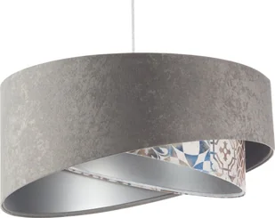 Niepowtarzalna, asymetryczna, lampa wisząca, dwa walce ścięte ukośnie, zestawione naprzemiennie, szary welur z zewnątrz i do wyboru delikatna, matowa apla - biała, srebrna, złota, beżowa lub wielokolorowa wewnątrz. Taka kompozycja kolorystyczna i jakościowe materiały to rozwiązanie miłe dla oka i pasujące do różnych wnętrz urządzonych w stylu klasycznym, nowojorskim, glamour, ale też nowoczesnym, retro i vintage. Kolor w pomieszczeniach domowych i komercyjnych to rozwiązanie eleganckie, luksusowe i bardzo dekoracyjne. Wraz z tkaninami w podobnych odcieniach zastosowanymi w aranżacji pomieszczeń to hit wnętrzarski i gwarancja cudownej domowej atmosfery, ciepła i przytulności. Ogromnym walorem tej lampy jest to, iż wykonana jest ręcznie przez polskiego producenta, z tkanin które są odporne na działanie promieni UV, dzięki czemu abażur nie ulega blaknięciu w trakcie długoletniego użytkowania.