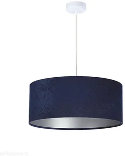 Nowoczesna lampa wisząca wykonana ręcznie, pojedynczy abażur walec o różnych wielkościach, z zewnątrz tkanina welurowa w kolorze granatowym, wnętrze abażura to biała, srebrna lub złota apla w matowym wydaniu. To połączenie tradycji z nowoczesnością. Abażur jest odporny na działania promieni UV, dlatego tkanina nie ulega blaknięciu w trakcie użytkowania. Lampa idealna do wielu przestrzeni domowych i komercyjnych. Nad stół w jadalni czy kuchni, do sypialni, do salonu nad stolik kawowy, do przedpokoju.
