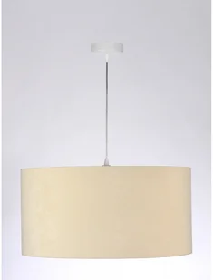 Nowoczesna lampa wisząca wykonana ręcznie, pojedynczy abażur walec o różnych wielkościach, z zewnątrz tkanina welurowa w kolorze beżowym, wnętrze abażura to biała, srebrna lub złota apla w matowym wydaniu. To połączenie tradycji z nowoczesnością. Abażur jest odporny na działania promieni UV, dlatego tkanina nie ulega blaknięciu w trakcie użytkowania. Lampa idealna do wielu przestrzeni domowych i komercyjnych. Nad stół w jadalni czy kuchni, do sypialni, do salonu nad stolik kawowy, do przedpokoju.