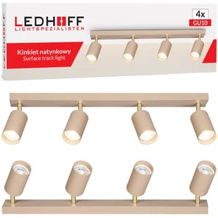 Ta beżowa lampa sufitowa / poczwórny kinkiet ścienny LEDHOFF zapewnia precyzyjne oświetlenie punktowe i doskonale wpasowuje się w każde wnętrze. Minimalistyczny design ze złotym akcentem w stylu glamour oraz pełna regulacja kąta padania światła sprawiają, że to wybór idealny do nowoczesnych aranżacji.