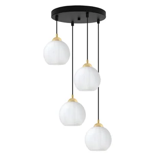 Lampa sufitowa wisząca okrągła Riffle loft firmy Light Home to wyrafinowany dodatek do nowoczesnych wnętrz. Ta lampa, wykonana w Polsce, charakteryzuje się ryflowanym kloszem o kulistym kształcie, który idealnie wpisuje się w styl glamour. Wykonana z wysokiej jakości szkła i metalu, łączy w sobie elegancką biel klosza z kontrastującymi złotymi i czarnymi elementami konstrukcyjnymi. Produkt należy do kolekcji COSTA, a jego klasa efektywności energetycznej A oraz stopień ochrony IP20 zapewniają trwałość i bezpieczeństwo użytkowania. Lampa wyposażona jest w cztery punkty światła E27, obsługujące źródła światła o maksymalnej mocy 60W.