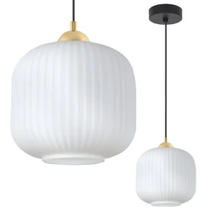 Przedstawiamy Państwu nowoczesną lampę sufitową Riffle loft, której wyjątkowy design idealnie wpasuje się w każde wnętrze, nadając mu niepowtarzalnego charakteru glamour. Polska produkcja gwarantuje najwyższą jakość wykonania. Lampa wisząca Riffle wyposażona jest w biały, ryflowany klosz w kształcie walca o średnicy 20 cm, co czyni ją subtelnym, ale efektownym dodatkiem do Państwa salonu, sypialni czy jadalni. Konstrukcja lampy wykonana jest z trwałego tworzywa sztucznego w eleganckiej czerni ze złotymi akcentami, co zapewnia jej nowoczesny i stylowy wygląd. Lampa korzysta z jednego źródła światła o gwincie E27, umożliwiając zastosowanie żarówki o mocy do 60W (żarówka nie jest dołączona do zestawu).