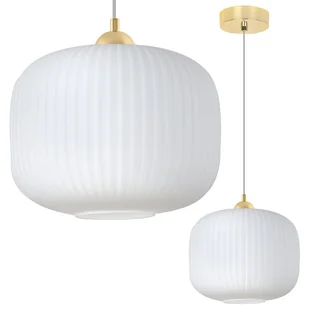 Lampa sufitowa wisząca Riffle loft 1xE27 od Light Home to wyraz nowoczesnego wzornictwa połączonego z elegancją stylu glamour. Produkt stworzony w Polsce, wyróżnia się białym szklanym kloszem o ryflowanej konstrukcji w formie walca, który nadaje jej niepowtarzalnego charakteru. Średnica klosza wynosi 25 cm, a jego wysokość to 29,5 cm, co czyni go wyrazistym elementem aranżacyjnym każdego wnętrza. Konstrukcja lampy wykonana jest z tworzywa sztucznego w subtelnej złotej kolorystyce, co harmonijnie współgra z dominującym białym kolorem klosza. Lampa wyposażona jest w jedno źródło światła o gwincie E27, z możliwością zastosowania żarówki o maksymalnej mocy 60 W (nie znajduje się w zestawie), co pozwala na dostosowanie jej do indywidualnych potrzeb oświetleniowych.