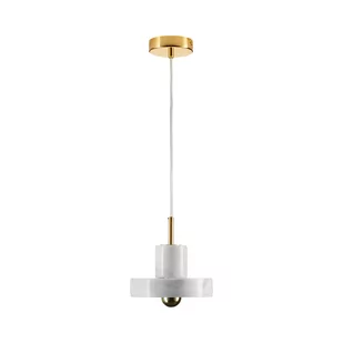Lampa wisząca UNIVERSO cechuje się funkcjonalnością, wykonana jest z połączenia trwałych materiałów marmuru i metalu. Delikatne metalowe wykończenie jest w w kolorze złota. Klasyczne połączenie kolorów białego i złotego dodaje lampie szyku i elegancji. Biały klosz z naturalnego kamienia idealnie nadaje się do niewielkich przestrzeni, a także sprawdzi się zarówno w jasnych, jak i ciemnych wnętrzach. Lampa UNIVERSO posiada miejsce na jedno źródło światła.