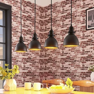 Idealna lampa nad stół w jadalni: 4-punktowa lampa wisząca Jasminka z czarno-złotymi kloszami Jasminka ma cztery metalowe klosze, z których każdy jest są czarny na zewnątrz i złoty wewnątrz. Kształt tej lampy nadaje jej nieco industrialny wygląd, a 4-punktowy design pozwala na dobre oświetlenie, dzięki czemu ta lampa wisząca doskonale się sprawdzi jako element zapewniający oświetlenie stołu. Dzięki zastosowaniu przez konstruktora metalu jako głównego materiału światło może wydostawać się tylko w dół. Tym samym efekt oślepienia będzie znikomy lub tez nie wystąpi w ogóle, a zamiast tego uzyska się szczególnie przytulne światło, które wydaje się jeszcze cieplejsze dzięki złotemu wnętrzu kloszy.