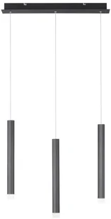 Trzylampowa lampa wisząca LED Bruno Nowoczesna lampa wisząca LED Bruno ma prosty i elegancki design, a ponadto oferuje jasne, ciepłobiałe światło. Składa się z trzech wąskich aluminiowych zawieszek, z których każda wyposażona jest w diody LED. Emitują one swoje światło celowo i bezpośrednio w dół i zapewniają dobre oświetlenie np. nad stołami w jadalni lub ladami kuchennymi. Dzięki prostemu wzornictwu Bruno pasuje do wielu stylów mieszkania i wyposażenia i może być wykorzystywany na wiele sposobów.
