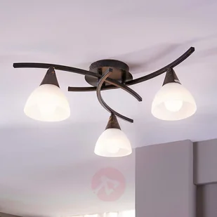 Lampę Della tworzą białe klosze z alabastrowym wzorem oraz atrakcyjnie wygięta oprawa, która składa się z trzech ramion w kształcie łuku. Ramiona podobnie jak zamocowanie sufitowe są powlekane czarnym lakierem i wykończone złotymi pociągnięciami pędzla, co nie tylko nadaje całości elegancki, ale również rustykalny wygląd.