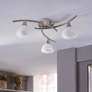 Lampa sufitowa Della działa z żarówkami LED z trzonkiem E14. Jest trzypunktowa i dzięki temu zapewnia odpowiednie jasne światło w różnych pomieszczeniach mieszkalnych. Dzięki technologii LED odznacza się dobrą efektywnością energetyczną. Szklane klosze o alabastrowej powierzchni zapewniają piękne światło, które przyczynia się do stworzenia przytulnej atmosfery. Oprawa lampy składa się z okrągłego zamocowania sufitowego i trzech łuków o matowym niklowym wykończeniu.