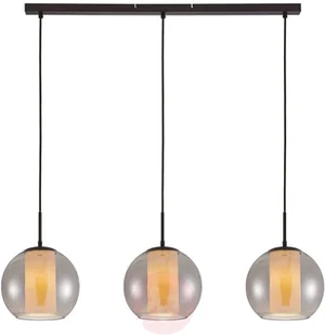 3-punktowa lampa wisząca Yela ze szklanymi kloszami w przydymionym szarym kolorze Nowoczesna lampa wisząca Yela z trzema eleganckimi szklanymi kloszami idealnie nadaje się do nowoczesnego oświetlenia stołów w salonie, jadalni lub kuchni. Trzy zawieszenia, które tutaj są przymocowane do uchwytu sufitowego za pomocą czarnego tekstylnego kabla, kończą się w kulistych kloszach. Każdy pojedynczy klosz ma podwójny szklany klosz: Zewnętrzny został wykonany w przezroczystym kolorze szarego dymu, wewnątrz i wokół oprawy E27 znajduje się inny opalizujący biały cylindryczny szklany korpus. Sprytnie ukrywa on żarówkę i sprawia, aby tylko światło delikatnie świeciło i nie oślepiało pomieszczenia.