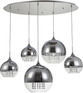Metalowa lampa ze szklanymi kloszami, ozdobonymi kryształkami, które pięknie odbijają światło, co nadaje wnętrzu niepowtarzalny wygląd. Seria Fermi w swojej ofercie posiada trzy rozmiary lamp wiszących.