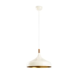 Lampa sufitowa do salonów, jadalni i nowoczesnych kuchni. Lampa sufitowa Sami charakteryzuje się kombinacją wykończeń, z zewnętrzną częścią w kolorze białym i wewnętrzną w kolorze złotym. Lampa zawiera w górnej części klosza dekoracyjną część w miedzianym wykończeniu. Wymiary: Wysokość 38-124 cm. Średnica 36 cm.
