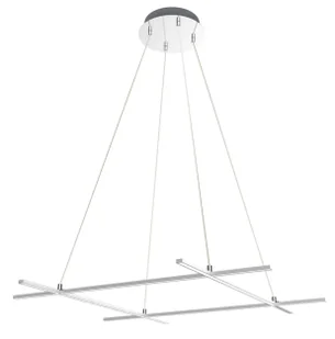Parametry: Styl: nowoczesny Materiał: zawiesie metalowe na linkach, korpus metalowy +akryl Kolor: srebrny Liczba boków: 4 Źródło światła: Led zintegrowany Źródło światła w komplecie: