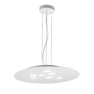 Lampa Luna w kolorze białym. Biała metalowa lampa wisząca z podwójnym strumieniem światła. Aluminiowy dyfuzor z białym wykończeniem. Biała rozeta sufitowa. Żarówki nie są dołączone.
