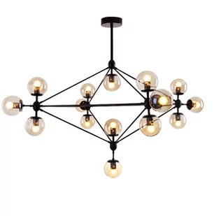 metal, szkło Kolor: czarny; szkło przejrzyste, bursztynowe Źródło światła: 15 x żarówka E27 Lampa wysyłana w częściach - do złożenia