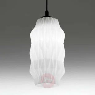 Szklana lampa wisząca Origami z przezroczystym kloszem Wzór tej szklanej oprawy wiszącej, wyprodukowanej we Włoszech, jest inspirowany eleganckimi, stylizowanymi liniami secesji, które zostały przekształcone w formę drukowaną. Odcień dmuchanego szkła nie tylko inspiruje pod względem formy, ale także poprzez kolor szkła otrzymuje specjalny akcent. Przezroczystość szkła powoduje również, że światło promieniuje we wszystkich kierunkach, a wbudowane linie tworzą unikalne odbicia w otoczeniu w wyniku załamania światła. Origami - oprawa wisząca, która może być używana do oświetlenia ogólnego lub obszarowego na różne sposoby i inspiruje fantastycznymi scenami oświetleniowymi.