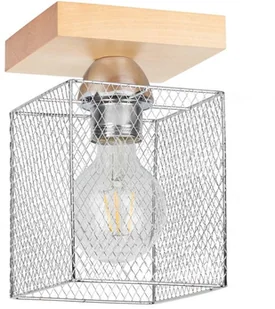 Lampa sufitowa jednopłomieniowa Norman Wood z drewna i metalu Lampa sufitowa Norman Wood, zaprojektowana w kwadratowej formie podstawowej, charakteryzuje się połączeniem kontrastujących materiałów. Metalowy klosz, w środku którego umieszczona jest lampa, posiada na bocznych powierzchniach siatkę. Jego chłodny, mechaniczny charakter kontrastuje z płaskim uchwytem sufitowym, który jest wykonany z lekkiego drewna.