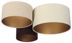 odcienie beżu, brąz, wnętrze złote Źródło światła: 3 x E27, max. 60W Żarówki w komplecie: nie Wymiary całkowite: 91 x 72 x 34 cm (szer. x dł. x wys.) Abażury: