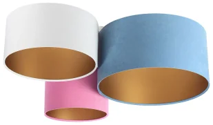 Dobierz efektywne źródło światła z gwarancją najniższej ceny w Europie! Parametry: Styl: nowoczesny Materiał: wysokogatunkowa tkanina welurowa, trwałe tworzywo PCV, metal Kolor: niebieski, biały, różowy, wnętrze abażura złote Źródło światła: 3 x E27, max.