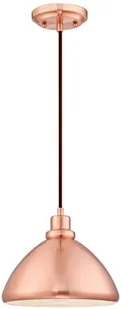 Lampa wisząca 6103940 z wykończeniem z lekkiej miedzi Westinghouse 6103940 to lampa wisząca w kolorze miedzi z wyraźnymi liniami, płynnymi liniami i zaokrąglonymi krawędziami; jej ładny, lekko zaokrąglony odcień rozszerza się od góry do dołu i ma atrakcyjne miedziane wykończenie, które od razu rzuca się w oczy. Ten modny kolor jest odzwierciedlony w baldachimie, który harmonijnie dopełnia ogólny obraz. Duża otwarta strona klosza pozwala na ucieczkę szerokiej wiązki światła, dzięki czemu oprawa oświetla szeroki obszar. Oprawa wisząca uzupełnia szeroki wachlarz stylów wyposażenia wnętrz i łączy się w elegancki sposób.