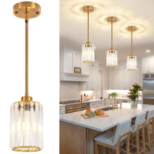 Elegancki żyrandol wiszący ze złoconym metalem i kryształem K9 — nowoczesne oświetlenie do kuchni, jadalni, przedpokoju i sypialni