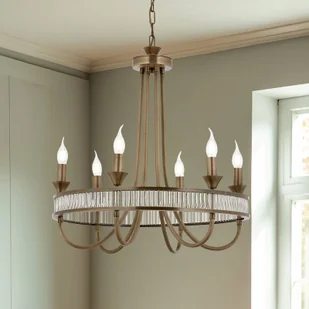 Żyrandol AV-1890-6E: elegancja i wszechstronność w kolorze antycznego złota Żyrandol AV-1890-6E, 6-punktowy, łączy w sobie ponadczasową elegancję z funkcjonalną wszechstronnością. Wykonany z wysokiej jakości żelaza i szkła, lśni eleganckim wykończeniem w kolorze antycznego złota. Ten wspaniały element oświetlenia idealnie nadaje się do jadalni i nadaje każdemu pomieszczeniu luksusowy charakter. Sześć płomieni zapewnia równomierne i imponujące rozprowadzenie światła, które nadaje się zarówno do przytulnych kolacji, jak i uroczystych okazji.